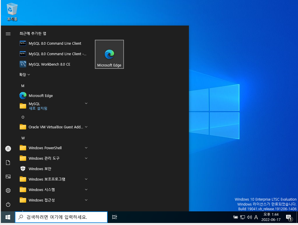 시작에서 MS Edge가 생긴 것을 확인해볼 수 있다!