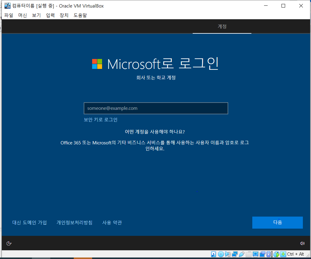 MS 로그인(로그인 하기 싫으면 좌측 하단에 '대신 도메인 가입')
