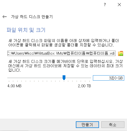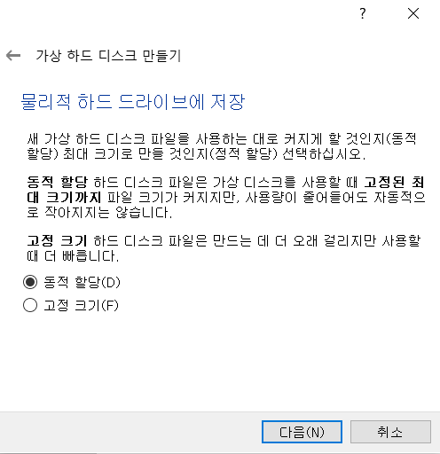 호스트(진짜) 컴퓨터에서 게스트(가상) 컴퓨터에 나눠줄 저장공간