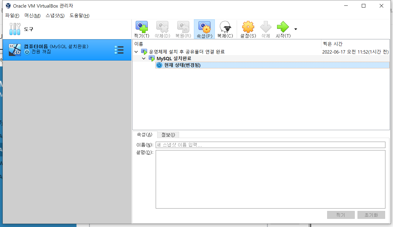 이렇게 중요한 설치나 사건이 있을 때마다 스냅샷을 해두면