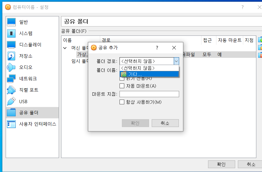 호스트(진짜) 컴퓨터와 게스트(가상) 컴퓨터의 파일 공유하기(공유폴더 연결)