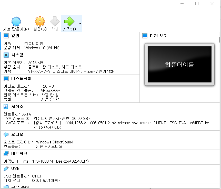 컴퓨터 당 최소 10GB 정도 필요한데, 30GB 정도 할당해주는 게 좋다고 한다 -> 사용 용도에 따라 원하는 만큼 분배!
